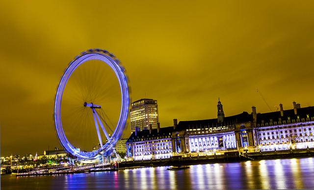为了庆祝千禧年的到来,一座巨大的摩天轮矗立在了泰晤士河畔。这曾经是世界上最早最大的观景摩天轮。原计划只打算让它存在五年。可“The London eye”一开放,便迅速成为整个伦敦最热门的旅游景点之一。因此也被长久的保存了下来。伦敦眼运行一圈要三十分钟,有足够时间供游人鸟瞰整个美丽的伦敦。